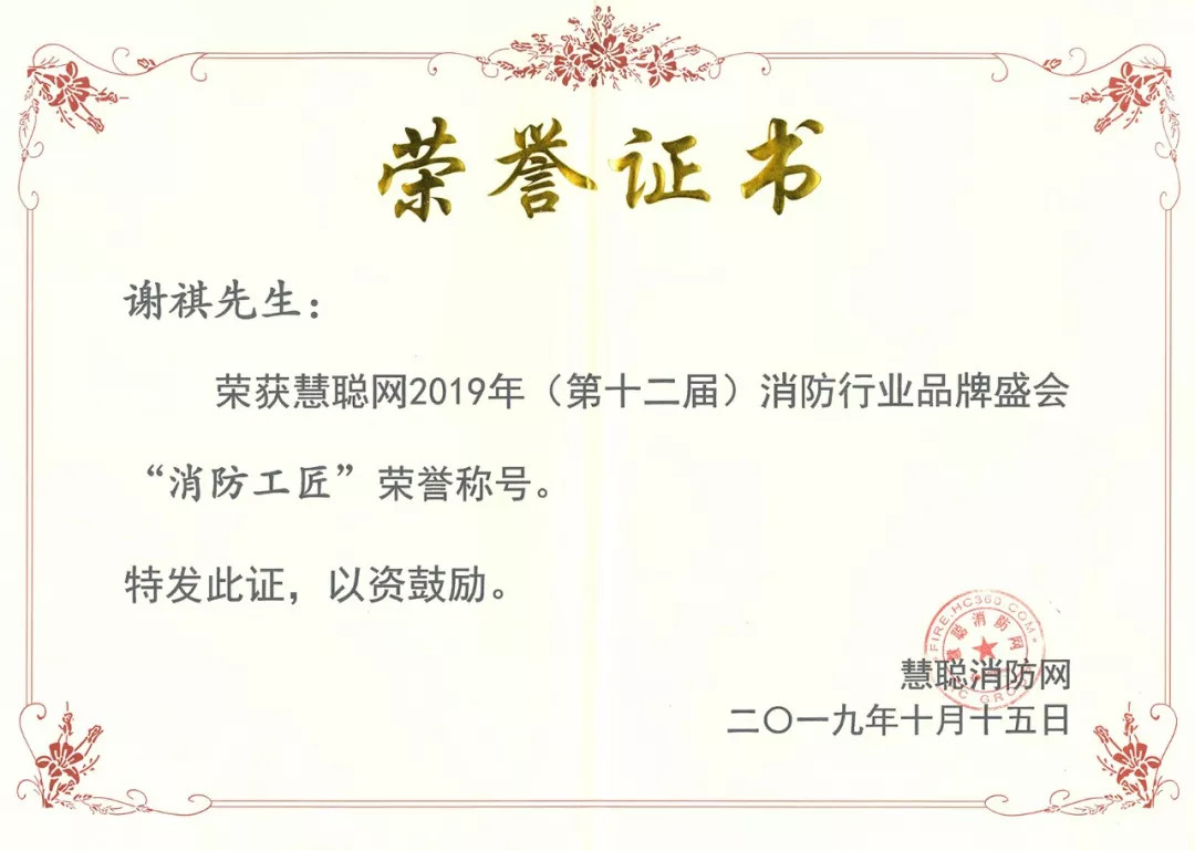 2019年10月15日,CFIC2019中國消防安全產業大會在北京隆重召開。在大會的頒獎盛典上, 深圳市廣安消防裝飾工程有限公司(以下稱“廣安消防”)榮獲“2019年十大消防工程企業”稱號,廣安消防副總經理謝祺先生當選“十大消防工匠”。