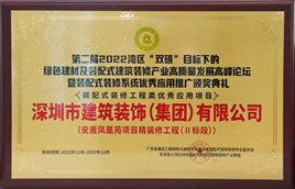 作為建筑裝飾行業龍頭企業,深裝集團積極響應國家號召,大力發展裝配式建筑,著力推進裝配式技術應用,在項目實踐中持續推廣并優化裝配式裝修施工工藝,匠心筑造高品質綠色建筑,承建的安居鳳凰苑項目精裝修工程榮獲“裝配式裝修工程類優秀應用項目”。