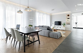 設計說明: 性格隨和風趣的夫婦倆,國內國外都居住,對于家居品質要求很高,有自己很堅定的審美傾向,整體需要非常休閑隨意簡單的家居氛圍。設計亮點:1. 廚房太小。(解決方法:將小陽臺外推納入廚房空間,利用率更高)2. 客廳梁位比較低。(解決方法:所以在后面的立面設計運用來構建的方式,將梁位和墻面結合做成水泥漆面,像是墻 面的一種延伸,弱化來原有的壓抑感)