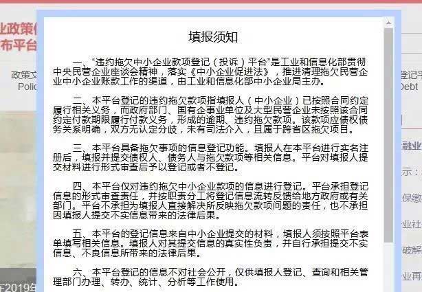 違約拖欠中小企業(yè)款項(xiàng)登記(投訴)平臺,主要受理國家機(jī)關(guān)、事業(yè)單位和大型企業(yè)違約拖欠中小企業(yè)貨物、工程、服務(wù)等款項(xiàng)的登記(投訴):