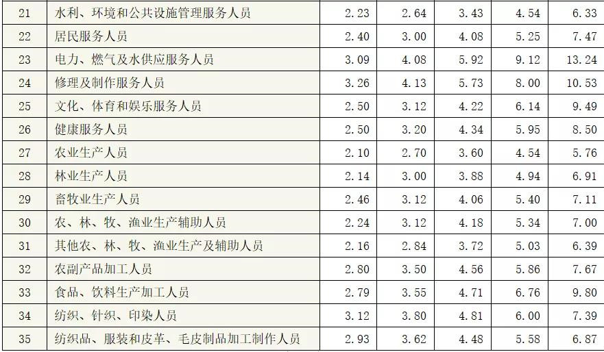 分職業(yè)中類企業(yè)從業(yè)人員工資價位(2020年)