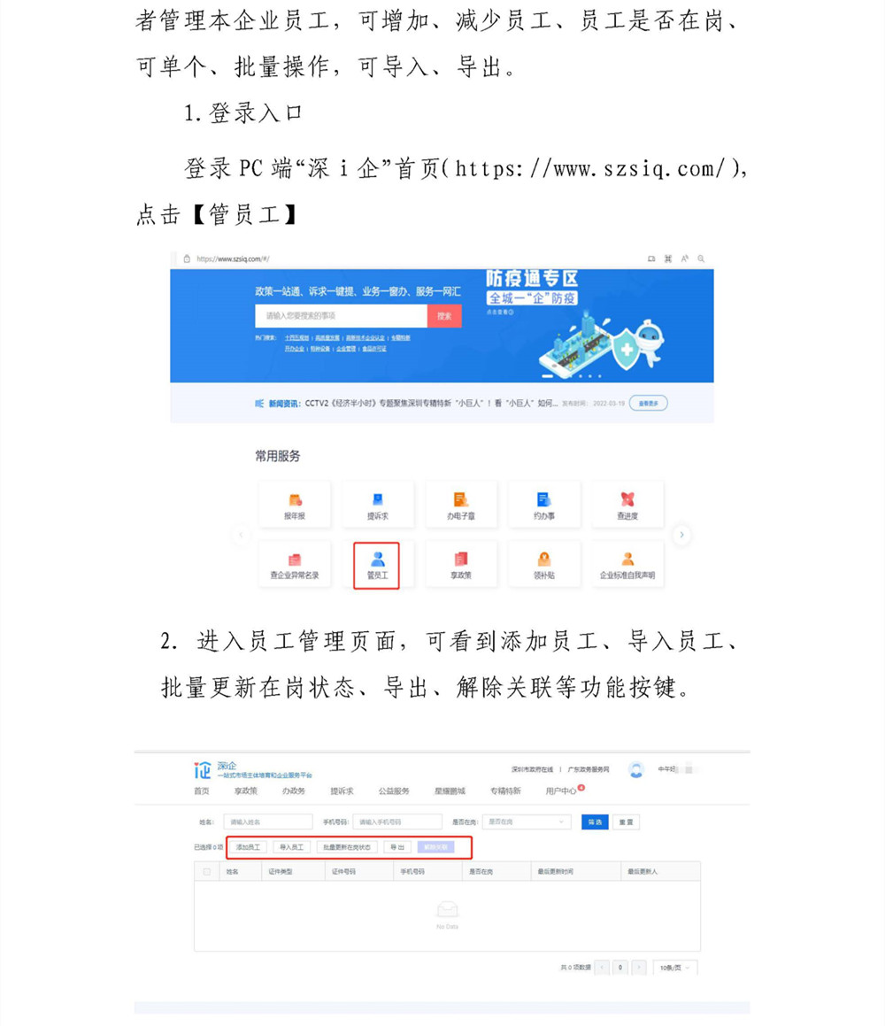 為助力企業科學抗疫、精準抗疫,在市工信局(市中小局)聯合市政數局、市衛健委、市人社局的支持下,“深i企”不斷優化“防疫通”服務,目前已上線核酸檢測告警系統、核酸檢測信息查詢、疫苗接種信息查詢、市區政策查詢等功能,無需企業投入精力開展管理工作,進入系統即可掌握本企業員工疫情防控動態信息,助力企業恢復生產,保雙鏈、穩增長。