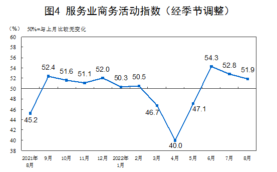 8月份,非制造業(yè)商務(wù)活動(dòng)指數(shù)為52.6%,比上月下降1.2個(gè)百分點(diǎn),仍位于擴(kuò)張區(qū)間,非制造業(yè)連續(xù)三個(gè)月恢復(fù)性增長(zhǎng)。