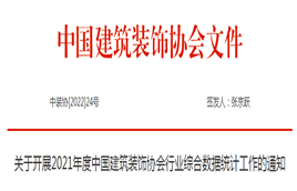 根據中國建筑裝飾協會年度工作安排,經研究決定開展2021年度中國建筑裝飾行業綜合數據統計工作。